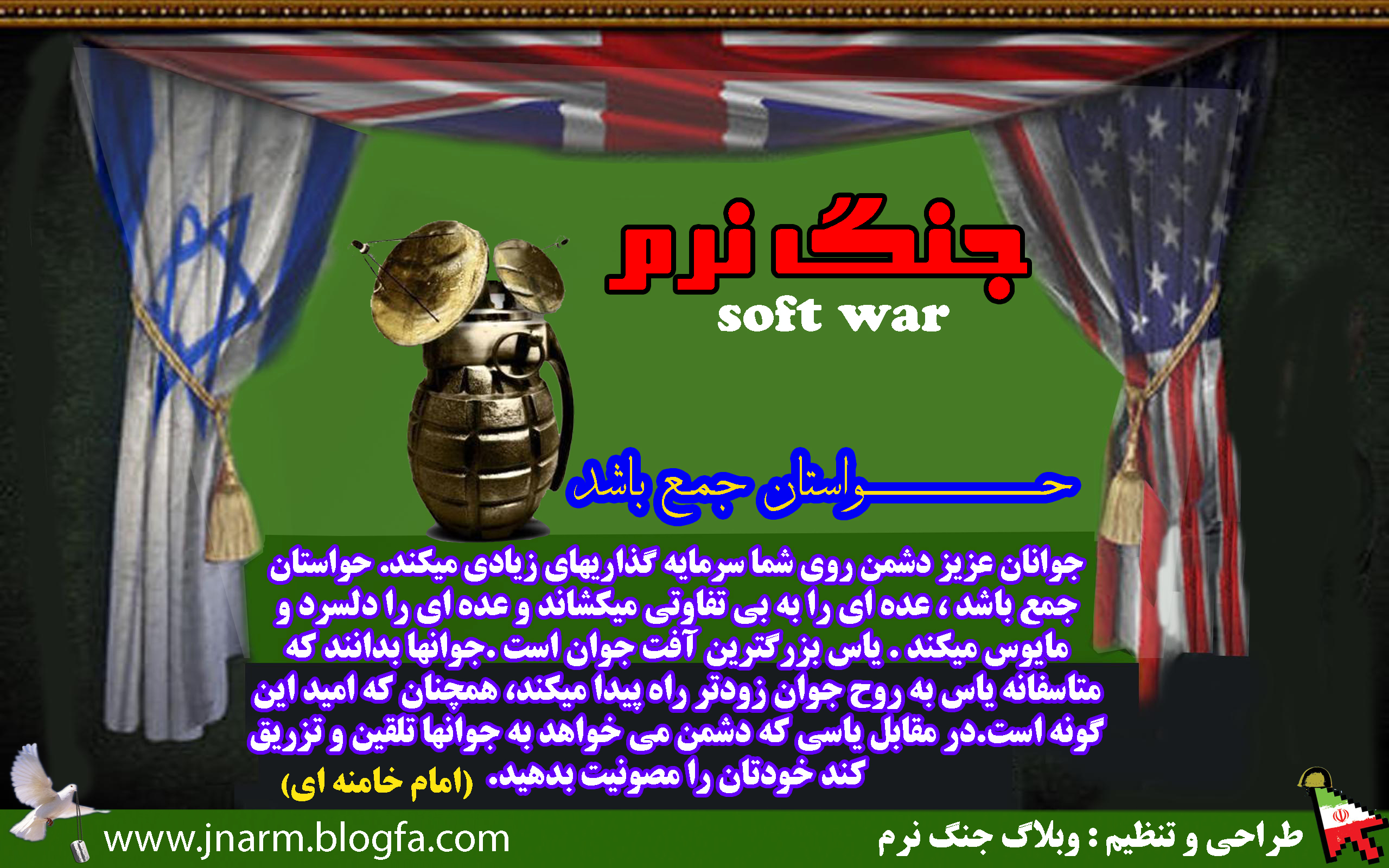 وبلاگ جنگ نرم : جوانان عزیز ! دشمن روی شما سرمایهگذاری های زیادی می کند؛ حواستان جمع باشد. عدهای را به بیتفاوتی میکشاند و عدهای را دلسرد و مایوس میکند. یاس، بزرگترین آفت جوان است. جوانها بدانند که متاسفانه یاس به روح جوان زودتر راه پیدا میکند؛ همچنان که امید این گونه است. در مقابل یاسی که دشمن میخواهد به جوانها تلقین و تزریق کند، خودتان را مصونیت بدهید». امام خامنه ای