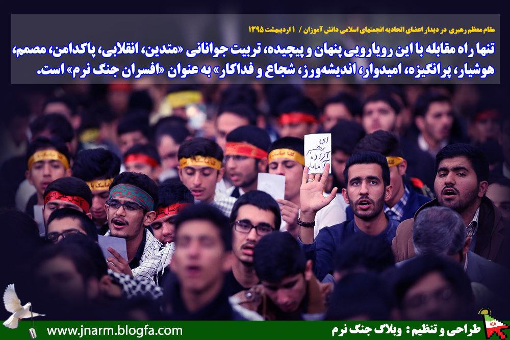 رهبر انقلاب اسلامی، جوانان دانشآموز و دانشجو را افسران این جنگ خواندند و افزودند: در این جنگ نرم، می توان دو افسر با دو هویت متفاوت متصور شد که نتیجه این جنگ بر اساس هویت افسران متفاوت خواهد بود.