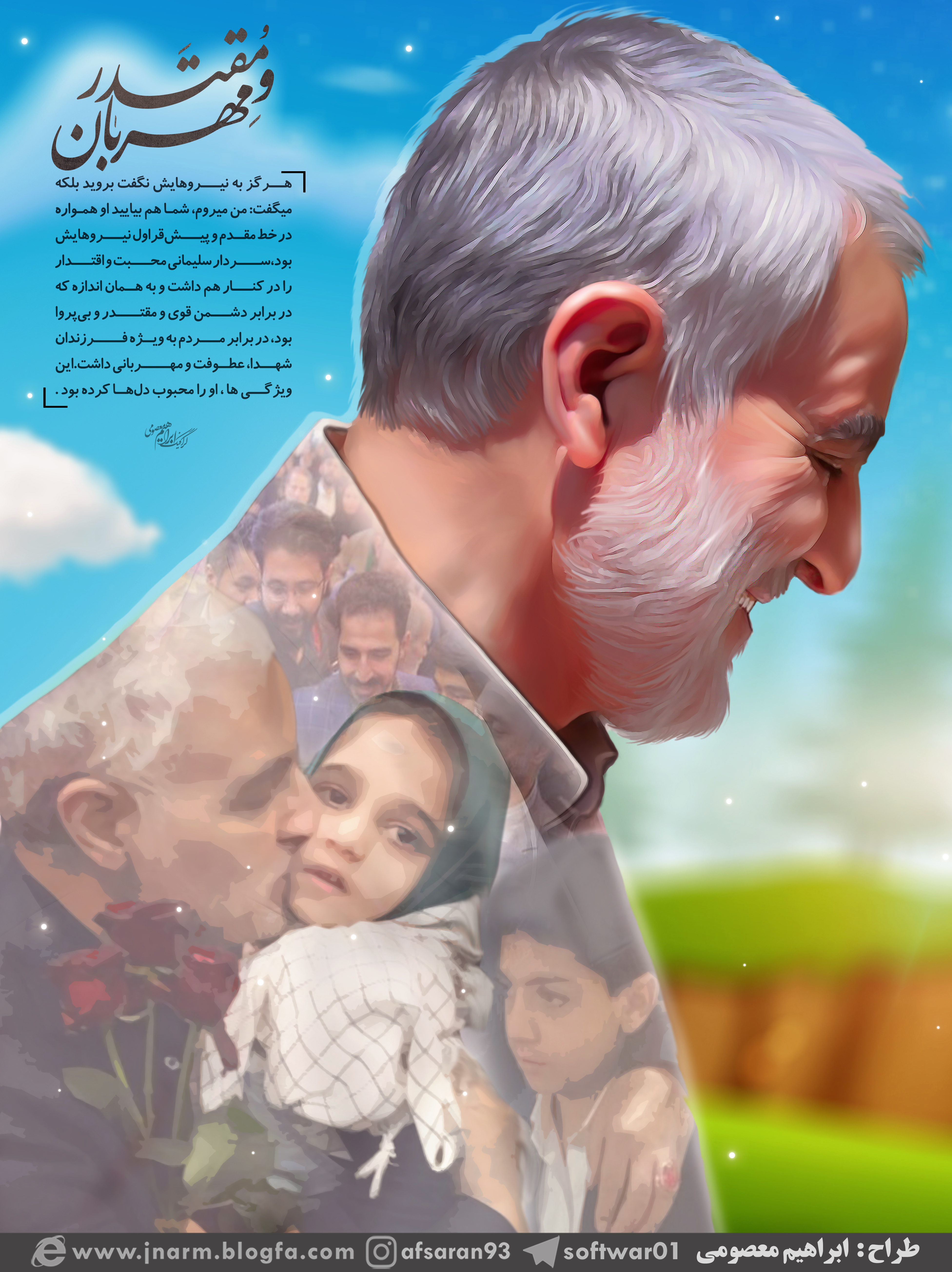 سردار حاج قاسم سلیمانی سردار نه یک ملت، بلکه سردار آحاد سرزمین های اسلامی بود که یک تنه جلوی استکبار جهانی ایستاد تا امنیت امروز ما مرهون تلاش های بی وقفه آن عزیز خفته در خاک باشد.